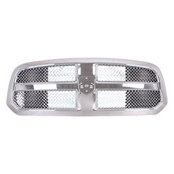 FRONT GRILLE• MADE OF PLASTIC• WILL NOT INCLUDE RAM EMBLEM• CHROME FRAME WITH CHROME MESH INSERT• EXCEPT REBEL AND WARLOCK MODELS